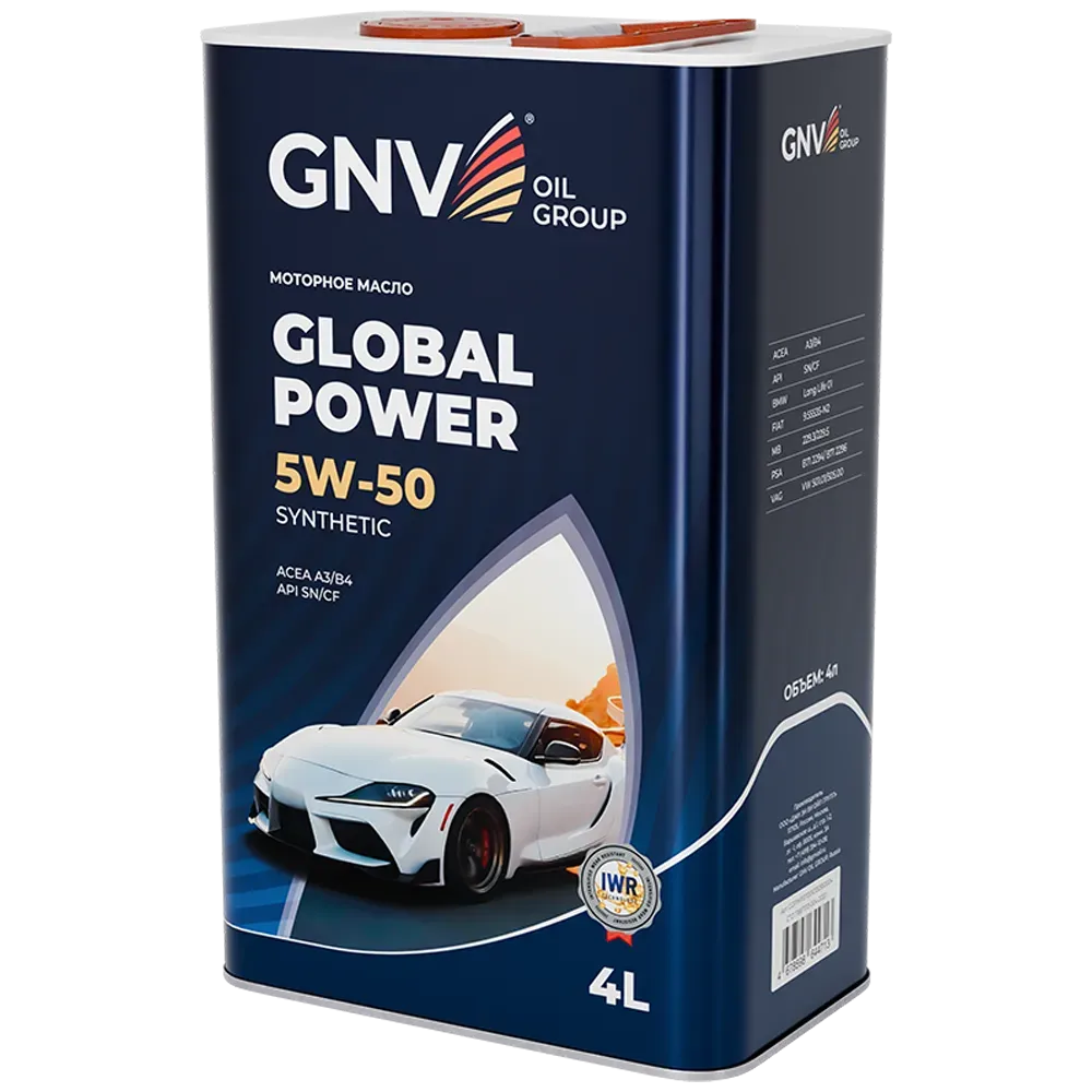 GNV Global Power 5W-50 –синтетическое моторное масло, разработанное на основе высококачественных синтетических базовых масел в сочетании с высокоэффективным пакетом присадок. Обеспечивает исключительно прочную масляную пленку и очень хорошую устойчивость к сдвигу.
