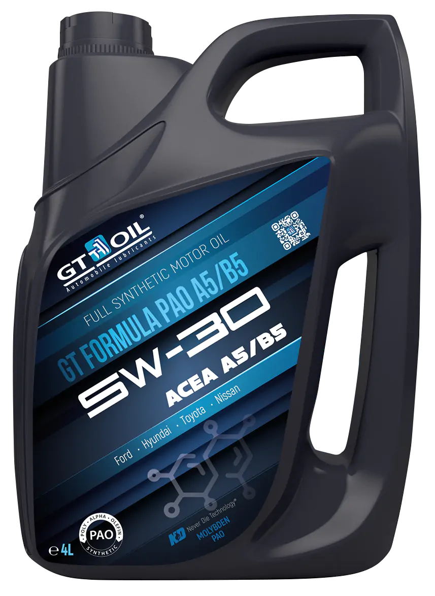Всесезонное универсальное полностью синтетическое моторное масло с высокими показателями топливной экономичности. Масло предназначено для применения в современных двигателях автомобилей американского и европейского производства, в том числе высокофорсированных турбированных легковых и грузовых автомобилей, требующих использования моторных масел спецификаций по ACEA A5/В5 или А1/В1. Изготовлено на основе синтетических базовых масел с применением PAO (полиальфаолефинов) и уникального пакета присадок. В формулу входит молибденовый комплекс MoDtC (модификатор с минимальным коэффициентом трения) и передовая парасинтетическая технология (MaxPAO), обеспечивающая высокие антиокислительные и антикоррозионные свойства масла. GT Formula A5/B5 образует сверхпрочную масляную пленку, защищая двигатель от износа и задиров. Восстанавливает эластичность уплотнений.