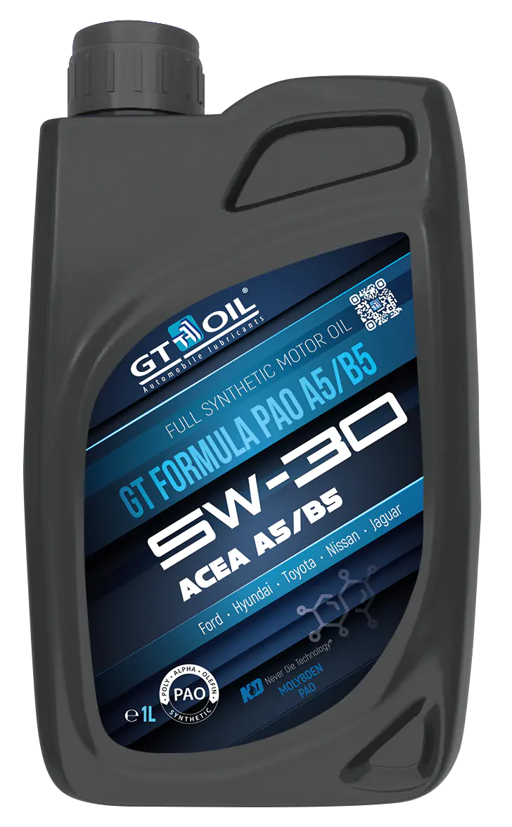 Всесезонное универсальное полностью синтетическое моторное масло с высокими показателями топливной экономичности. Масло предназначено для применения в современных двигателях автомобилей американского и европейского производства, в том числе высокофорсированных турбированных легковых и грузовых автомобилей, требующих использования моторных масел спецификаций по ACEA A5/В5 или А1/В1. Изготовлено на основе синтетических базовых масел с применением PAO (полиальфаолефинов) и уникального пакета присадок. В формулу входит молибденовый комплекс MoDtC (модификатор с минимальным коэффициентом трения) и передовая парасинтетическая технология (MaxPAO), обеспечивающая высокие антиокислительные и антикоррозионные свойства масла. GT Formula A5/B5 образует сверхпрочную масляную пленку, защищая двигатель от износа и задиров. Восстанавливает эластичность уплотнений.