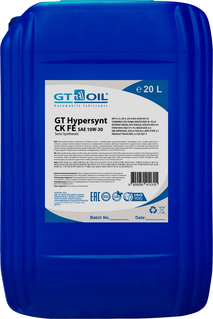 При разработке GT Hypersynt CK FE SAE 10W-30 использована специальная технология присадок и комплексной моющей системы для достижения превосходных эксплуатационных характеристик в новых и старых двигателях. Помимо прекрасной защиты от загущения масла из-за накопления cажи, продукт сохраняет общее щелочное число на прежнем уровне, даже при продолжительных интервалах замены масла. Передовая технология продукта способствует также значительному снижению расхода масла и стойкости к окислению, коррозионному и абразивному износу, и не допускает образования высокотемпературных отложений. Рекомендовано к применению в двигателях, работающих на биодизельном топливе; способствует высокой стойкости к окислению и предотвращает загрязнение поршней.