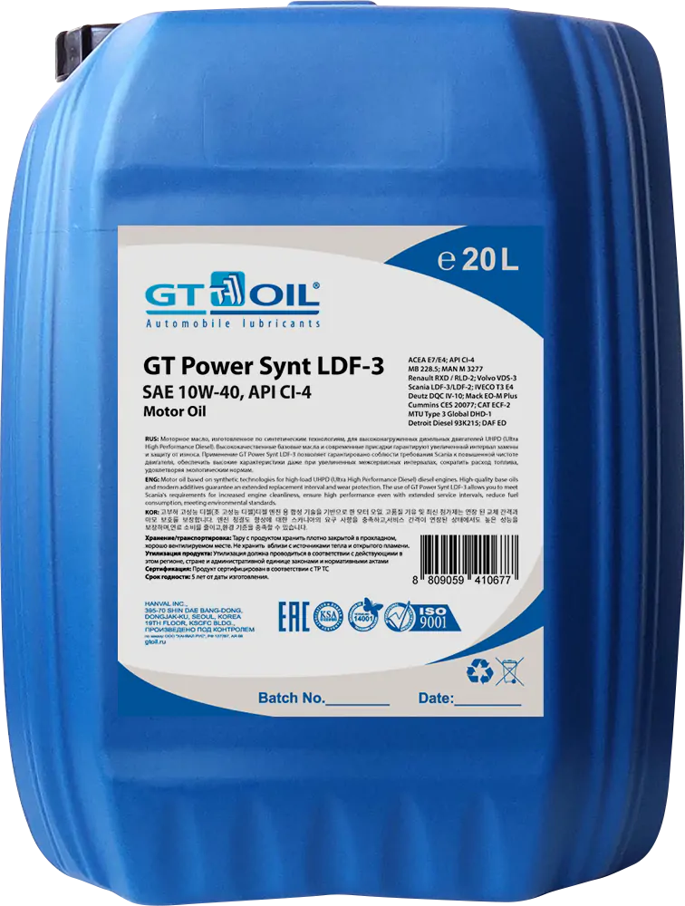 Моторное масло, изготовленное по синтетическим технологиям, для высоконагруженных дизельных двигателей UHPD (Ultra High Performance Diesel). Высококачественные базовые масла и современные присадки гарантируют увеличенный интервал замены и защиту от износа. Применение GT Power Synt LDF-3 позволяет гарантировано соблюсти требования Scania к повышенной чистоте двигателя, обеспечить высокие характеристики даже при увеличенных межсервисных интервалах, сократить расход топлива, удовлетворяя экологическим нормам. Мгновенная смазка узлов двигателя во время прогрева снижает износ. Тщательно подобранные присадки обеспечивают идеальную чистоту двигателя в режиме высоких нагрузок карьерного самосвала, «старт-стоп» и междугородних перевозок.