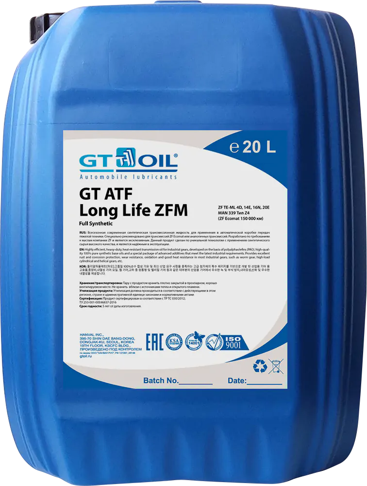 GT ATF Long Life ZFM — всесезонная современная синтетическая трансмиссионная жидкость для применения в автоматической коробке передач тяжелой техники.