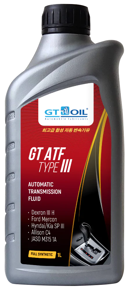 GT ATF Type III представляет собой высокоэффективную трансмиссионную жидкость с модифицированными фрикционными показателями. Разработана в соответствии со строгими эксплуатационными требованиями, предъявляемыми к автоматическим коробкам передач, преобразователям вращения, гидроусилителям руля и гидравлическим сцеплениям легковых автомобилей, внедорожников и легких грузовиков Hyundai / Kia / Mitsubishi а также Chrysler, Dodge, Jeep, Proton, Chery в которых требуется использование жидкости класса ATF SP-III. Формула GT ATF Type III создана на основе синтетических базовых компонентов высокого качества и присадок, разработанных с применением передовых технологий. Обеспечивает высокую антиокислительную и химическую стабильность на всем сроке эксплуатации. Нейтрально к любым уплотнительным материалам. GT ATF Type III замещает Dexron III (G) и Dexron II (E).