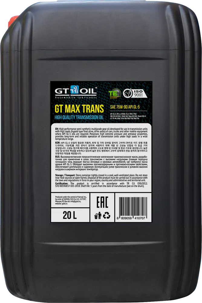GT Oil Max Trans 75W-90, 20л