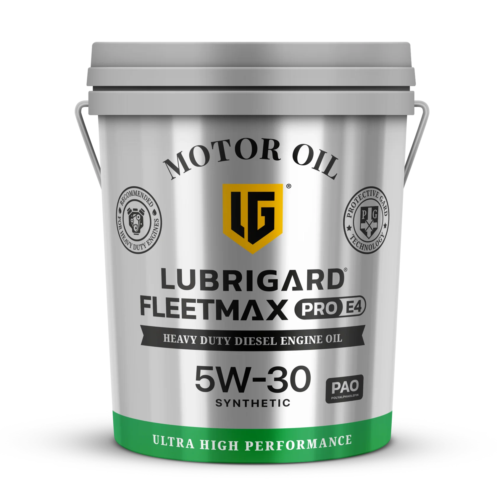 LUBRIGARD FLEETMAX PRO E4 серия масел в специально разработанная для применения в двигателях магистрального коммерческого транспорта, тяжёлых, средних и лёгких грузовиков, самосвалов и спецтехники, а также других видов транспортных средств, оборудованных дизельными двигателями с/без турбонаддува, не оснащённых сажевыми фильтрами (DPF). Предназначено для тяжёлых условий эксплуатации, в том числе при использовании топлива переменного качества.