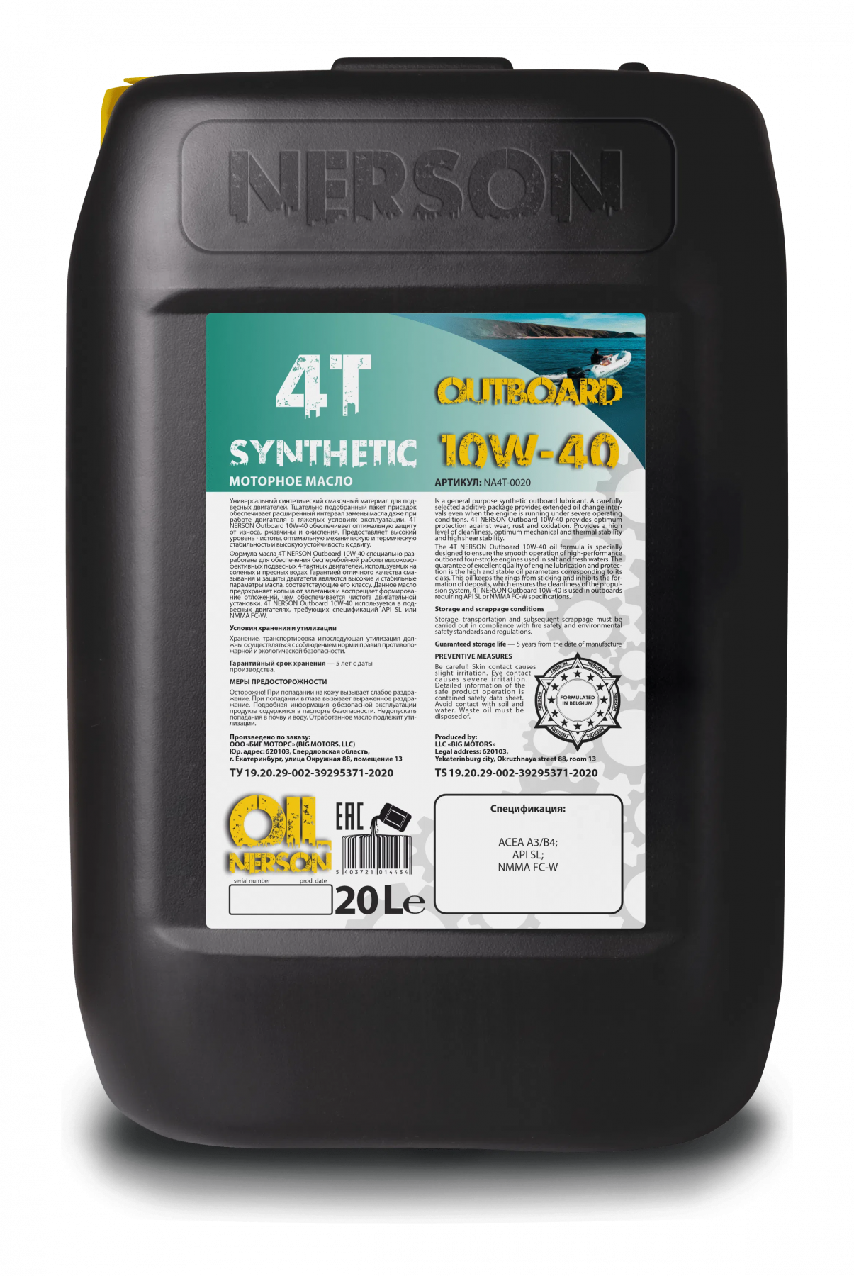 4T NERSON Outboard 10W-40 используется в подвесных двигателях, требующих спецификаций API SL или NMMA FC-W.