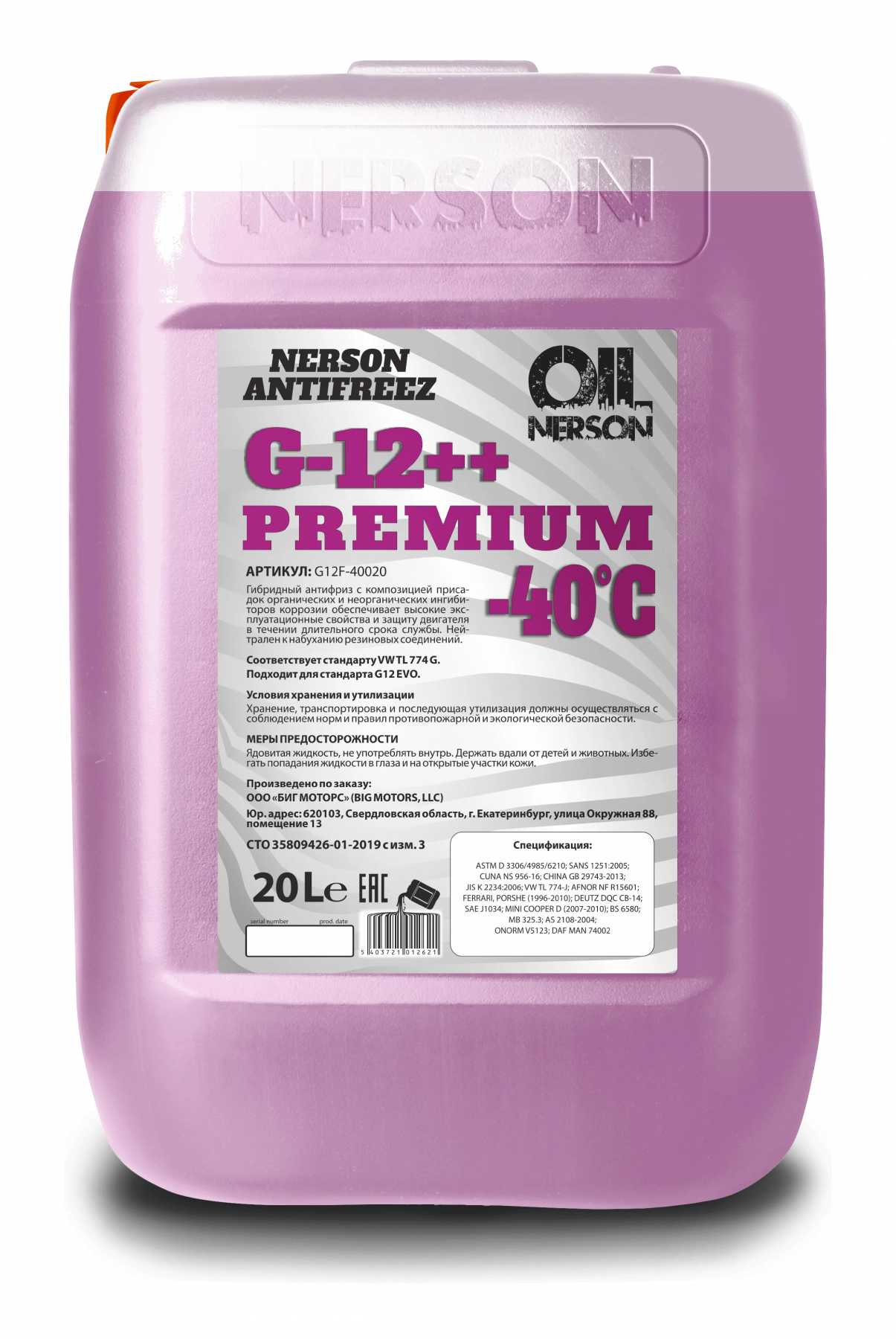Охлаждающая жидкость ANTIFREEZ NERSON Premium G12++ используется в качестве теплопередающей жидкости в современных двигателях внутреннего сгорания. Жидкость изготовлена на основе высококачественного этиленгликоля с использованием присадочных композиций по гибридной технологии (HOAT - Hybrid Organic Acid Technology) и берет все самое лучшее от органической карбоксилатной и неорганической силикатной технологии.