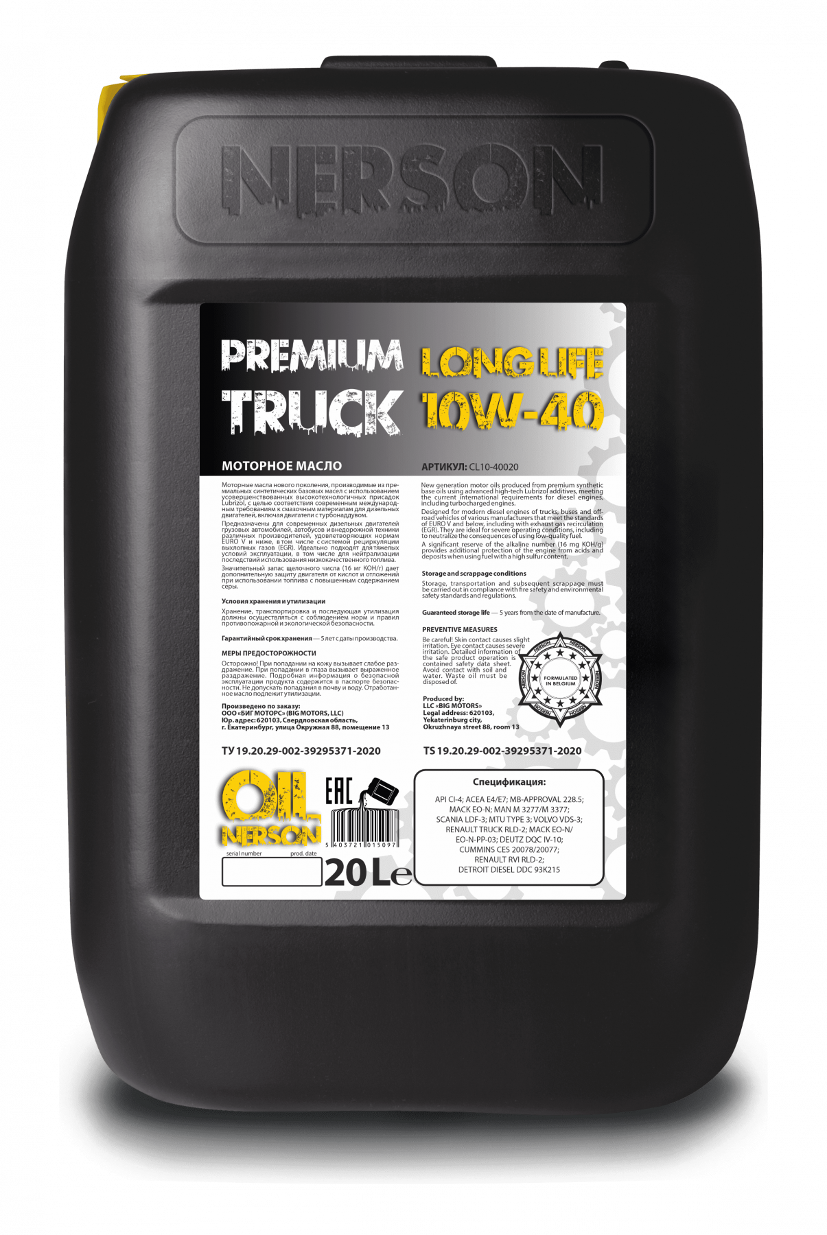 Nerson Oil Premium Truck LL40 10W-40, 20л