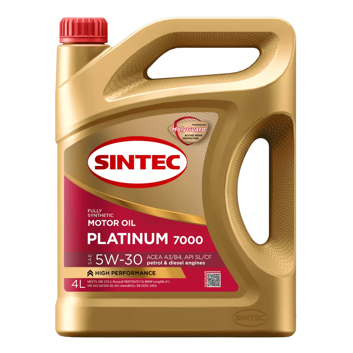 Cинтетическое моторное масло Sintec Platinum 7000 5W-30 A3/B4 SL/CF предназначено для применения в современных высоконагруженных бензиновых и дизельных двигателях легковых автомобилей, микроавтобусов и малотоннажных грузовых автомобилей, где требуется уровень эксплуатационных свойств API SL/CF и ACEA A3/B4. Производится с использованием фирменной технологии