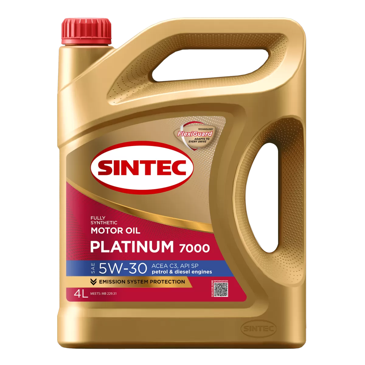 Синтетическое моторное масло Sintec Platinum 7000 5W-30 C3 SP соответствует современным требованиям европейских производителей. Произведено с использованием фирменной технологии FlexiGuard.