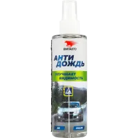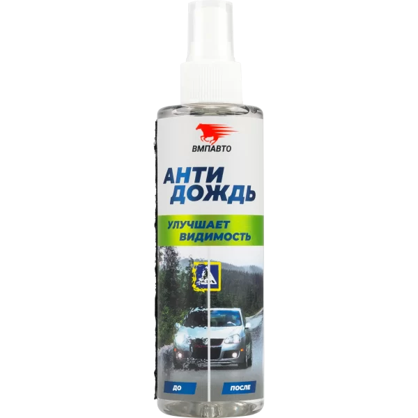 Водоотталкивающее средство для нанесения на наружные зеркала, лобовое и боковые стекла автомобиля.