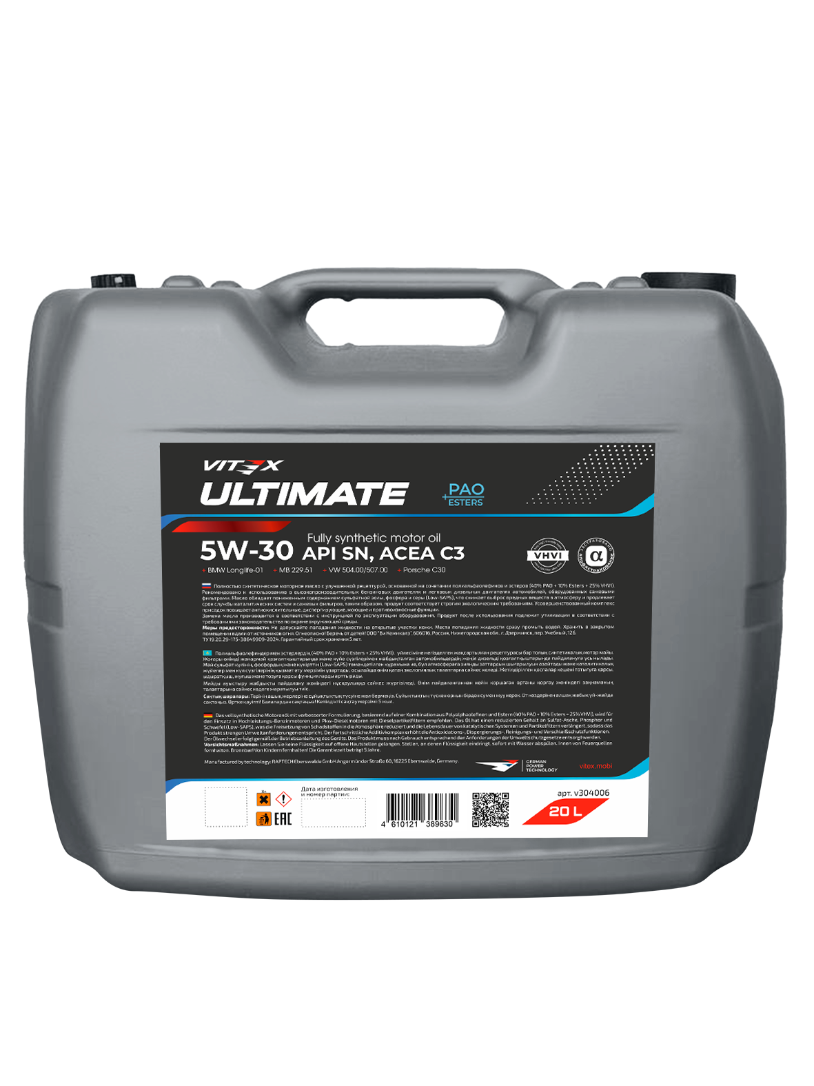 Полностью синтетическое моторное масло с улучшенной рецептурой, основанной на сочетании полиальфаолефинов и эстеров (40% PAO + 10% Esters +25% VHVI). Рекомендовано к использованию в высокопроизводительных бензиновых двигателях и легковых дизельных двигателях автомобилей, оборудованных сажевыми фильтрами. Масло обладает пониженным содержанием сульфатной золы, фосфора и серы (Low-SAPS).