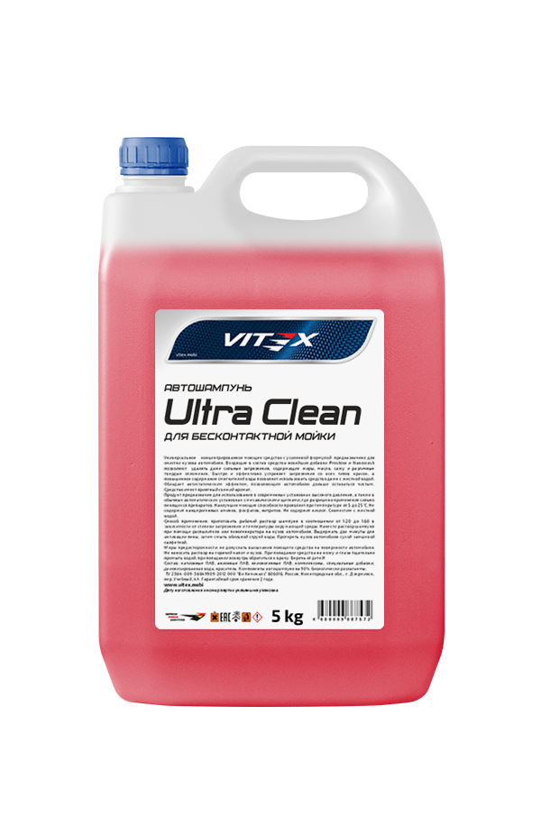 Концентрированное моющее средство с усиленной формулой Vitex Ultra Clean предназначено для очистки кузова автомобиля. Входящие в состав средства новейшие добавки ProD2 позволяют удалять даже сильные загрязнения, содержащие жиры, масло, сажу и различные твердые отложения. Быстро и эффективно устраняет загрязнения со всех типов красок, а повышенное содержание смягчителей воды позволяет использовать средство даже с жесткой водой. Обладает антистатическим эффектом, позволяющим автомобилю дольше оставаться чистым. Продукт предназначен для использования в современных установках высокого давления, а также в обычных автоматических установках с механическими щетками, где разрешено применение сильно пенящихся препаратов. Наилучшие моющие способности проявляет при температуре от 5 до 25С. Не содержит канцерогенных аминов, фосфатов, нитритов. Не содержит кислот. Совместим с жесткой водой.