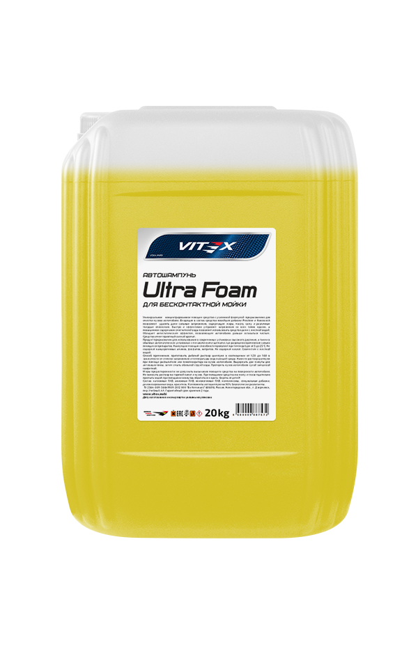 Концентрированное универсальное моющее средство Vitex Ultra Foam предназначено для очистки кузова автомобиля. Благодаря уникальным современным добавкам SFB средство обладает высокой растворяющей способностью по отношению к сильным загрязнениям, содержащим жиры, масло, сажу и различные твердые отложения. Высокое содержание моющих и эмульгирующих компонентов позволяет быстро и эффективно устранять загрязнения со всех типов красок. Образует мягкую обильную пену, исключающую воздействие абразивных частиц (песка, пыли) на лакокрасочное покрытие автомобиля.