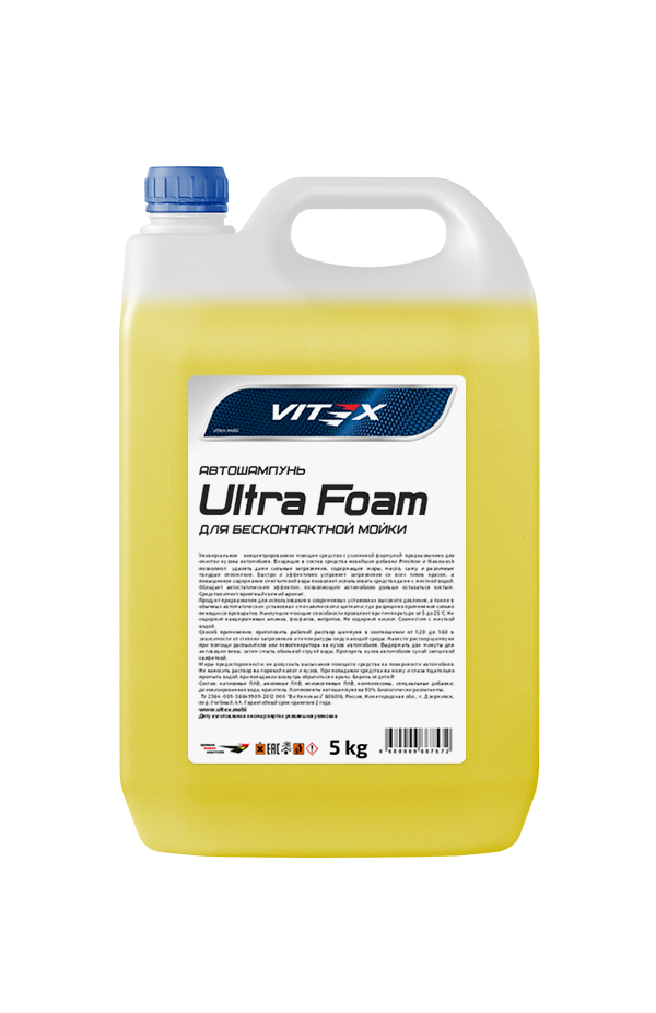 Концентрированное универсальное моющее средство Vitex Ultra Foam предназначено для очистки кузова автомобиля. Благодаря уникальным современным добавкам SFB средство обладает высокой растворяющей способностью по отношению к сильным загрязнениям, содержащим жиры, масло, сажу и различные твердые отложения. Высокое содержание моющих и эмульгирующих компонентов позволяет быстро и эффективно устранять загрязнения со всех типов красок. Образует мягкую обильную пену, исключающую воздействие абразивных частиц (песка, пыли) на лакокрасочное покрытие автомобиля.